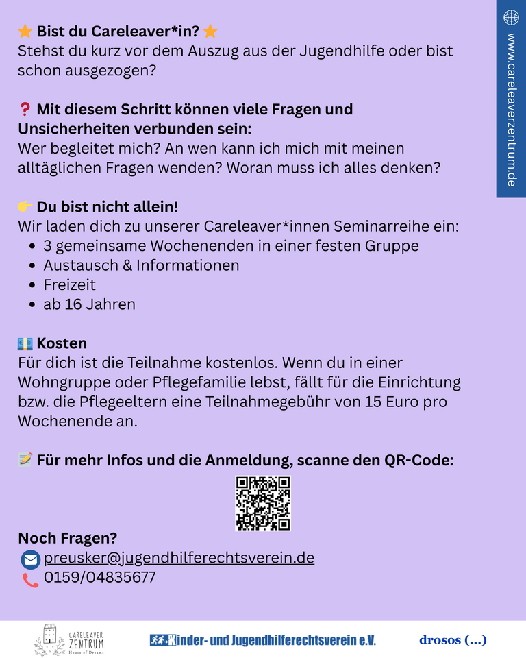 Wichtig: Alle Angebote sind für dich als Careleaver*in kostenlos! 💸